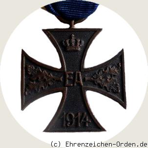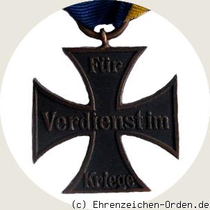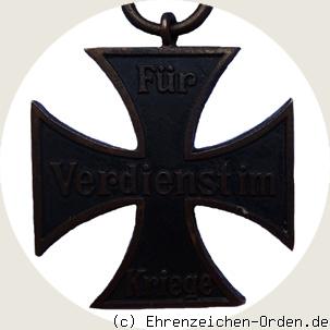 Das Kriegsverdienstkreuz wurde am 23. Oktober 1914 durch Herzog Ernst August gestiftet und bestand zunächst nur „Einklassig“. Es wurde ohne Unterschied des Ranges und Standes für Verdienste im Weltkrieg verliehen. Voraussetzung war die braunschweiger Staatsangehörigkeit und der Besitz des Eisernen Kreuzes. Am 17. November 1915 wurde das Kreuz für Nichtkombatanten am Nichtkämpferband eingeführt um Verdienste zu würdigen die nicht im Zusammenhang mit Kampfhandlungen standen. Das Kreuz 1.Klasse wurde erst am 20.März 1918 gestiftet. Voraussetzung dazu waren wiederholte hervorragende Verdienste im Krieg und der Vorbesitz der 2. Klasse. Für die 2. Klasse wurde das Bewährungsabzeichen eingeführt. Gegen Kriegsende wurde auch Kreuze aus Kriegsmetall bronziert hergestellt. Braunschweiger Soldaten die in Bayerischen Truppen dienten konnten auch für das Kriegsverdienstkreuz vorgeschlagen werden wenn sie eine Bayerische Kriegsauszeichnung bekommen hatten und nicht das Eiserne Kreuz. Es kommen Kreuze mit fein gekörntem und auch glattem Untergrund vor. Quelle: J. Nimmergut: Deutsche Orden und Ehrenzeichen bis 1945, Bd. 1, 1997.