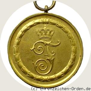 Runde Medaille aus Goldbronze mit Rand. Oben eine angelötete gewöhnliche Öse mit Bandring.