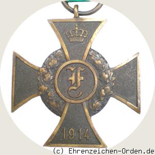 Das Friedrich Kreuz wurde am 12. Dezember 1914 durch Herzog Friedrich II von Anhalt gestiftet. Es wurde für Verdienste im 1. Weltkrieg verliehen. Beliehene waren Soldaten Anhalts oder ausgesuchte Persönlichkeiten wie Wilhelm II., Paul von Hindenburg oder Großadmiral Dönitz. Verliehen wurde das Kreuz an Anhaltiner, ohne Unterschied des Ranges, die sich durch tapfere Taten im Krieg hervorgetan haben und bereits im Besitz des Eisernen Kreuzes waren. Ebenso wurden Verdienste im Heimatland gewürdigt. Es wurden Kreuze in heller und dunkler Bronze hergestellt. Gegen Kriegsende wurden die Kreuze aus bronziertem Kriegsmetall gefertigt. Das Kreuz wurde an Kämpfer und Nichtkämpfer verliehen. Das Kämpferkreuz wurde am grünen Band mit roten Seitenstreifen verliehen, für sonstige Verdienste hat das grüne Band weiße Seitenstreifen. Vorgesehen war das Kreuz nur für Männer. In wenigen Ausnahmen wurde es auch an Frauen verliehen. Die Verleihungen an Frauen fanden wohl vor der Stiftung des Marien-Kreuzes statt. Bekannt ist auch ein Steckkreuz dessen Verleihung aber nicht bestätigt ist. Das Kreuz wurde 18.000 bis 20.000 mal für Kriegsverdienste verliehen. Das Kreuz für Nichtkämpfer, oder sonstige Verdienste, wurde nur 1174 mal verliehen. Quelle: Gerd Scharfenberg, „Die Orden und Ehrenzeichen der Anhaltischen Staaten“, 1999.