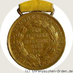 Diese Medaille wurde am 29. August 1849 durch Großherzog Leopold gestiftet. Beweggrund war die dankbare Anerkennung für die Verdienste um die Niederschlagung des Aufstandes im Großherzogtum Baden und zur bleibenden Erinnerung an die kriegerischen Tugenden der beteiligten Armee und der verbündeten Truppen. Ausgezeichnet wurden alle Mitstreiter die den letzten Feldzug 1849 gegen die Rebellen in Baden tadellos mitgemacht haben. Empfangsberechtigt waren alle Offiziere, Unteroffiziere, Soldaten und Kriegsbeamte die 1849 mit der Armee zur Bekämpfung des Aufstandes in das Großherzogtum eingerückt waren.