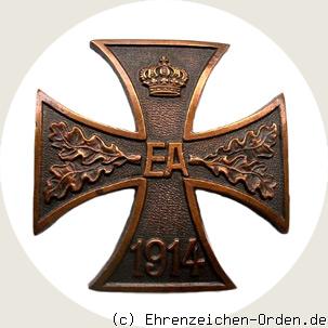 Kreuz aus Bronze, in Form des Eisernen Kreuzes mit erhöhtem Rand. Die Kreuzarme nach oben leicht gewölbt. Hinten eine senkrechte Anstecknadel.