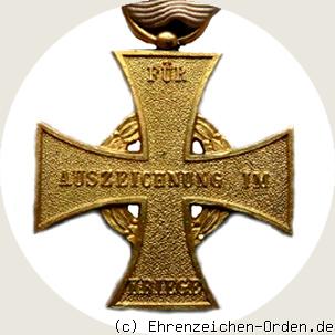 Für Verdienst im Felde wurde das Kreuz am Kämpferband (gelb mit roten und weißem Randstreifen) verliehen. Empfangsberechtigt waren Offiziere, Unteroffiziere und Soldaten des Infanterie-Regiments Nr.55 und lippische Staatsangehörige die in anderen Einheiten dienten. Vorschläge wurden durch das Militärkabinett in Detmold bearbeitet. Alleiniger Hersteller war der Hofjuwelier C.F. Zimmermann in Pforzheim. Einige wenige Stücke wurden aus vergoldetem Silber hergestellt. Gegen Ende des Krieges 1918 wurden wenige Kreuze aus vergoldetem Zink hergestellt. Verleihungen an Frauen an Damenschleife sind auch bekannt. Dieses Kreuz wurde auch an Nichtkämpfer verliehen die sich in der Heimat verdient gemacht haben. Sei es bei der Verwundetenpflege oder jedweder anderen Tätigkeit die den kriegerischen Erfolg zu fördern geeignet war. Diese Kreuze trugen die Bezeichnung Kriegsverdienstkreuz am weißen Band (weiß mit roten und gelben Randstreifen). Am Kämpferband wurden bis 1922 18.375 Kreuze und am Nichtkämpferband 1.117 Kreuze verliehen worden. Eine Rückgabepflicht bestand nicht. Quelle: Reiner Schwark, Orden und Ehrenzeichen des Fürstentums Lippe Detmold 1778 – 1933, Schriften des Lippischen Landesmuseum Bd. VI., 2005.