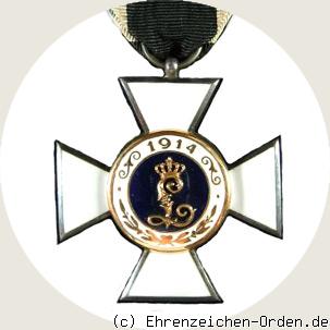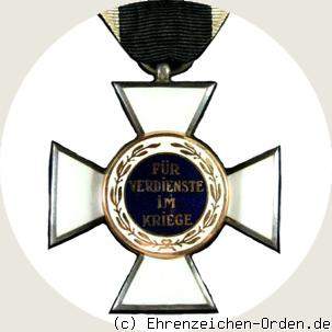 Kreuz aus Silber. Die Kreuzarme sind silber bordiert. Die Innenseiten weiß emailliert. Vorder- und Rückseite mit aufgelegtem runden, goldenen (seit 1918 Silber vergoldet), emaillierten Mittelschildern. Am oberen Kreuzarm eine kuglige Öse mit Bandring. Im Medaillonring der Hersteller – G. H. – und die Silberpunze 950.