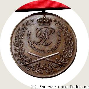 Die Militär-Verdienstmedaille mit Schwertern auf der Vorderseite der Medaille wurde durch Ergänzung am 17. Dezember 1914 durch Fürst Leopold IV. eingeführt. Die Militär-Verdienstmedaille der 1. Ausgabe, ohne Schwerter, wurde im Weltkrieg noch zweimalig 1915 verliehen. Die Medaille mit Schwertern war nicht mehr rückgabepflichtig. Erst bei der Verleihung des Kriegsverdienstkreuzes musste die Medaille zurückgegeben werden. Die Herstellung der Medaillen übernahm der Hofjuwelier C.F. Zimmermann in Pforzheim. Die Medaillen variieren in der Dicke 2,3 bis 2,9 mm und im Gewicht zwischen 17,3 g und 21,3 g. Die Medaille wurde über 1900 mal verliehen. Zur Verleihung gehört eine Urkunde mit rückseitig aufgedruckten Statuten.