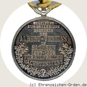Zunächst wurde diese Auszeichnung für Verdienste im Albertverein verliehen später auch für Verdienste auf dem Gebiet der hilfreichen Nächstenliebe. Je nach Größe des Verdienstes wurde die Medaille in Gold, Silber oder Bronze verliehen. Empfangsberechtigt waren sowohl Männer als auch Frauen oder Jungfrauen. Stempelschneider war Max Barduleck in Dresden. Es existieren auch kleinere Medaillen (20 mm), welche auf der Rückseite nur die Inschrift: – ALBERT – VEREIN – IN – SACHSEN – 1867-1892 – haben. Diese gehören zur ersten Prägung mit der Bezeichnung – KRONPRINZESSIN – auf der Vorderseite. Die erste Variante wurde weiter an Mitglieder des Albertvereins verliehen für Heimatverdienst.