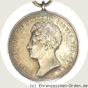 Gestiftet wurden erstmals Medaillen für „Verdienste im bürgerlichen Leben“ am 30. Januar 1835 durch Herzog Ernst I. Diese Medaillen hatten eine breite Bügelöse und eine Größe von 39 mm. Verliehen wurden diese in 3 Stufen Gold, Silber und Bronze. Die großen Medaillen wurden aber nur 2 Jahre bis 1837 verliehen. Die Stempel stammten von Prof. Ferdinand Helfricht. Ab 1837 bis 1858 wurden kleinere Medaillen (24 mm) verliehen. Die bronzene Stufe ist nicht mehr bekannt. Die Umschrift der Vorderseite ist mit Bindestrichen zwischen Sachsen – Coburg – Gotha ausgeführt. Ab 1858 wurden die Medaillen in Gold und Silber mit gewöhnlicher Öse und Bandring versehen. Die Bezeichnung „Für Kunst und Wissenschaft“ war ab 1856 gebräuchlich. Die Umschrift jetzt wieder mit dem Wort „und“. Die Stempel wurden wieder von Prof. Helfricht gefertigt. Im Jahre 1860 wurde ein Verdienstkreuz als höhere Stufe zu den Medaillen gestiftet. Quelle: J. Nimmergut, Deutsche Orden und Ehrenzeichen bis 1945, Bd. III, 1999.