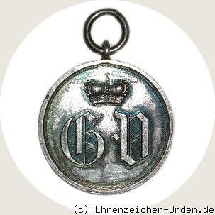Gestiftet wurde diese Medaille am 26. September 1878 durch Fürst Georg Victor für besondere Verdienste von Zivilpersonen und Soldaten der unteren Rangstufen gestiftet. Die Auszeichnung für Militärpersonen unterscheidet sich von der Auszeichnung für Zivilpersonen durch das Band. Das Zivilband ist orangegelb mit roten und schwarzen Seitenstreifen. Für Militärverdienst weiß mit gelben, roten und schwarzen Seitenstreifen.