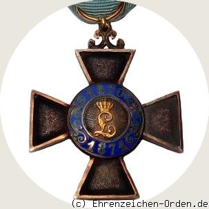 Gestiftet wurde das Verdienstkreuz am 12. Mai 1871 durch König Ludwig II. Verliehen wurde das Kreuz für Verdienste auf dem Gebiet der Krankenpflege und andere aufopfernde Handlungen zum Wohle der Armee während des Krieges 1870/71 gegen Frankreich. Ausgezeichnet wurden Männer, Frauen und Jungfrauen die sich im freiwilligen Einsatz verdient gemacht hatten. Hauptberuflich tätige Personen wurden nicht berücksichtigt. Wurde eine Person schon mit einer anderen Auszeichnung für ähnliche Verdienste im Krieg bedacht, kam er ebenfalls für die Verleihung des Verdienstkreuzes nicht mehr in Betracht. Wurde das Verdienstkreuz an fürstliche Personen verliehen wurde es an einem breiten Band von der rechten Schulter zur linken Hüfte getragen. Es wurden auch Kreuze gefertigt die in der Stärke reduziert sind. Der Medaillonring bei diesen Kreuzen ist nicht so hoch und das rote Genfer Kreuz ist schmaler gestaltet. Das Verdienstkreuz war nicht rückgabepflichtig. Die Verleihungszahl wird mit ca. 1500 Stück angegeben. Quelle: J. Nimmergut, Deutsche Orden und Ehrenzeichen bis 1945, Bd. I, 1997.