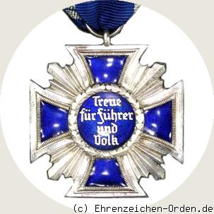 Gestiftet wurde diese Auszeichnung per Verordnung am 2. April 1939 durch Reichskanzler Adolf Hitler. Geschaffen wurde diese Dienstauszeichnung für alle Parteigenossen unabhängig davon ob sie Leiter einer Gruppierung oder nur Mitglieder waren. Gewürdigt werden sollte die langjährige und treue Arbeit im Dienste der NSDAP. Dabei war es nicht ausschlaggebend ob diese Arbeit hauptamtlich oder ehrenamtlich war. Die Dienstauszeichnung wurde in 3 Stufen gestiftet. Die 1. Stufe war ein goldenes Kreuz mit weiß emaillierten Kreuzarmen, die 2. Stufe ein silbernes Kreuz mit blau emaillierten Kreuzarmen und die 3. Stufe ist ein bronzenes Kreuz ohne Emaille. Gold wurde nach 25 Jahren, Silber nach 15 Jahren und Bronze nach 10 Jahren treuen Dienst verliehen. Es wurden Exemplare mit leicht gewölbten Kreuzarmen und flache Kreuze gefertigt. Quelle: J. Nimmergut, Deutsche Orden und Ehrenzeichen bis 1945, Bd. 4, 2001.