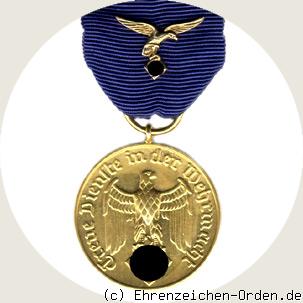 Die Dienstauszeichnungen für die Wehrmacht wurden am 16.März 1936 anlässlich des ersten Jahrestages der Wiedereinführung der allgemeinen Wehrpflicht vom Reichskanzler Adolf Hitler eingeführt. Sie bestand zunächst aus 4 Klassen. Die 1. und 2.Klasse waren Kreuze, die 3. und 4.Klasse waren Medaillen. Am 10.März 1939 wurde das Eichenlaub für die 1.Klasse nach 40 Dienstjahren gestiftet. Zur Dienstzeit wurden auch Zeiten angerechnet die in der alten Wehrmacht und in den anerkannten Freiwilligenverbänden (Freikorps) bis zur Übernahme in die Reichswehr und anschließend in der Wehrmacht geleistet wurden. Unterbrechungen wurden nicht berücksichtigt. Ebenfalls konnten Dienstzeiten der Landes- und Schutzpolizei angerechnet werden wenn die Person in die Wehrmacht überführt wurde.