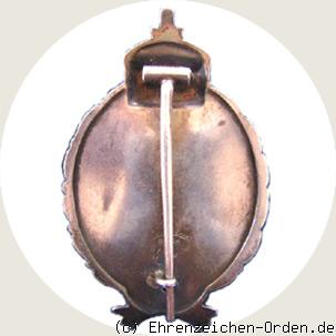 Stehendes ovales Abzeichen aus Silber (oder versilbertem Material). Hinten eine senkrechte Anstecknadel.