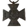 Abzeichen aus Buntmetall in Form eines 8-strahligen, versilberten Kreuzes. Mittig aufgelegt ein vergoldetes, emailliertes Kreuz mit vergoldetem Schriftband darunter. Am oberen Kreuzarm angefügt eine Bandschleife mit aufgelegtem, emailliertem Wappenschild. Die Rückseite glatt und silbern mit waagerechter Anstecknadel mittig auf dem Stern.