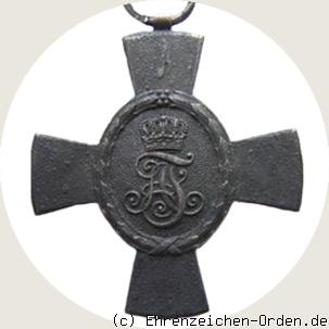 Gestiftet wurde das Kreuz von Großherzog Adolf Friedrich VI am 17.Juni 1917 für Staatsbürger von Mecklenburg-Strelitz. Empfangsberechtigt waren Personen die im Heimatland sich besonders verdient gemacht haben zur Unterstützung des Heeres oder der Krankenpflege sei es in Behörden, Betrieben oder anderen Breichen die im Krieg die Einheiten des Staates unterstützten. Zur Verleihung gehörte ein Besitzzeugnis. Die Auszeichnung war nicht rückgabepflichtig. Auf Grund der geringen Einwohnerzahl Mecklenburg-Strelitz ist diese Auszeichnung, anders als bei Preußen, sehr selten. Es kommen Exemplare in Eisen oxydiert und versilbert oder auch Kriegsmetall (Zinklegierung) oxydiert vor. Hersteller war Godet Berlin. Es wurden insgesamt 598 Stück geliefert, von denen aber nur 446 Kreuze verliehen wurden. Nach dem Tod des Ausgezeichneten verblieben die Kreuze bei den Angehörigen. Quelle: Peter Ohm-Hieronymussen, Die Mecklenburg-Strelitzer Orden und Ehrenzeichen, 2000.