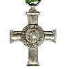 Vierstrahliger Stern aus Silber mit glatten abgerundeten Strahlen. Die 4 Hauptstrahlen sind verlängert. Dazwischen jeweils 5 zur Mitte abgestufte Zwischenstrahlen. Insgesamt also 24 Strahlen. Seitlich sind die Strahlen von kürzeren Strichen eingefasst. Auf der Vorderseite mittig aufgelegt ein rundes, goldenes und emailliertes Medaillon. Die Rückseite ist glatt mit großer runder, verzierter Abdeckplatte mit der Herstellerbezeichnung. Senkrecht eine Anstecknadel.