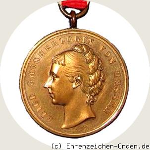 Gestiftet wurde die Alice-Medaille, offiziell Verdienstmedaille mit dem Bildnis der Großherzogin Alice, 1878 durch ihren Mann Großherzog Ludwig IV. zum Andenken an seine verstorbene Frau in Bronze und Silber. Verliehen wurden die Medaillen am 25. April 1884 an Damen des „Alice-Vereins“ , später auch an Personen die sich bei der Einrichtung des durch die Großherzogin gegründeten Hospitals verdient gemacht hatten. Ebenfalls ausgezeichnet wurden die Präsidenten von verschiedenen Einrichtungen der Wohlfahrt. Nimmergut gibt bis 1911 nur 29 Verleihungen an.