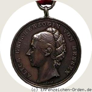 Gestiftet wurde die Alice-Medaille, offiziell Verdienstmedaille mit dem Bildnis der Großherzogin Alice, 1878 durch ihren Mann Großherzog Ludwig IV. zum Andenken an seine verstorbene Frau in Bronze und Silber. Verliehen wurden die Medaillen am 25. April 1884 an Damen des „Alice-Vereins“ , später auch an Personen die sich bei der Einrichtung des durch die Großherzogin gegründeten Hospitals verdient gemacht hatten. Ebenfalls ausgezeichnet wurden die Präsidenten von verschiedenen Einrichtungen der Wohlfahrt. Die ersten Verleihungen erfolgten zur Einweihung des Alice-Hospitals in Darmstadt. Nimmergut gibt insgesamt 81 Verleihungen an.