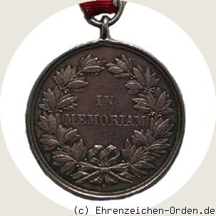Runde Medaille aus Silber mit 2-mal abgestuften erhöhtem Rand. Oben eine angelötete gewöhnliche Öse mit Bandring.