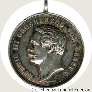 Am 25. September 1843 stiftete Großherzog Ludwig II. das Zivil-Ehrenzeichen. Bis zu dessen Tod 1848 wurde dieses aber nicht mehr verliehen. Großherzog Ludwig III., sein Sohn, hat am 14. November 1849 die Medaille mit seinem Bildnis und neuen Statuten versehen. Ausgezeichnet wurden Personen ohne besonderen Rang für ausgezeichnete Verdienste, rühmliche Handlungen und außerordentlicher Leistungen. Die verschiedenen Verdienste unterscheiden sich durch die Inschrift auf der Rückseite. Folgende Inschriften sind unter Ludwig III. bekannt: – FÜR TREUE DIENSTE – 1849 bis 1889, – FÜR TAPFERKEIT – 1866 und 1870/71, – FÜR VERDIENSTE – 1849 bis 1889, – FÜR VIELJÄHRIGE TREUE DIENSTE – 1849 bis 1869, – FÜR LANGJÄHRIGE TREUE DIENSTE – 1869 bis 1889, – FÜR FÜNFZIG-JÄHRIGE TREUE DIENSTE – 1849 bis 1889, – FÜR RETTUNG AUS LEBENSGEFAHR – 1849 bis 1889, – FÜR VERDIENSTE IM LÖSCHWESEN – 1854 und die hier gezeigte Medaille – FÜR RETTUNG VON MENSCHENLEBEN – 1849 bis 1889. Die Schrift ist 2-zeilig, 3-zeilig oder 5-zeilig angeordnet. Bis 1853 war der Name und Wohnort des Trägers im Rand eingeschlagen. Die frühen Medaillen sind etwas dicker und schwerer als die späteren ohne Namen des Trägers. Die Inschrift – FÜR VIELJÄHRIGE TREUE DIENSTE – wurde bis 1869 verliehen und danach durch die Inschrift – FÜR LANGJÄHRIGE TREUE DIENSTE – ersetzt. Die Stempel zur Medaille stammen vom Medailleur Carl Friedrich Voigt der an der Münchener Königlichen Münze tätig war. Die Medaillen für vieljährige bzw. langjährige treue Dienste konnten auch am Band des Philipps-Ordens verliehen werden. Die beiden Medaillen für Rettung… wurden als Allgemeines Ehrenzeichen nur unter Ludwig III. und Ludwig IV. verliehen. 1896 wurden die Medaillen unter Großherzog Ernst Ludwig ein eigenständiges Ehrenzeichen unter dem Namen Rettungsmedaille.