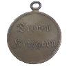 Runde Medaille aus Bronze mit erhöhtem Rand. In tragbarer Ausführung oben eine Öse mit Bandring.