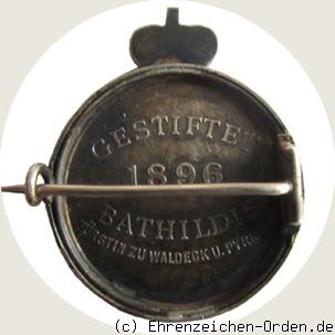 Die Fürstin Bathildis zu Waldeck und Pyrmont stiftete am 15. Januar 1896 die Medaille für weibliche Dienstboten. Vorausgegangen waren zahlreiche Anfragen beim Waldecker Landesdirektorium zur Belohnung langjähriger, treuer Dienstboten. Ausgezeichnet wurden Frauen die mindestens 25 Jahre bei ein und demselben Dienstherren treu und tadellos ihren Dienst versehen hatten. Von 1887 bis 1903 wurde nur eine silberne Medaille am Band verliehen, die von der Gestaltung gleich der hier gezeigten Brosche war. Bei der Medaille fehlt der oben aufgelötete Fürstenhut. Über die Verleihungen bis 1903 liegen keine Unterlagen vor. Ab 1903 wurde statt der Medaille eine Brosche verliehen. Diese wurde nun in 2 Stufen, für 40 Dienstjahre in Silber vergoldet und für 25 Jahre in Silber verliehen. Die Auszeichnung musste beim Landesdirektorium beantragt werden. Dazu musste eine Begründung, der Lebenslauf und eine Stellungnahme des örtlichen Geistlichen beigefügt werden. Der Antrag wurde zur Entscheidung der Fürstin Bathildis vorgelegt. Die Verleihung erfolgte mit einer Urkunde. Den Entwurf der Urkunde stammt von G.W. Bermüller aus Leipzig. Gedruckt wurden diese bei E. Grumneck in Arolsen. Die Broschen wurden nur äußerst selten verliehen. Die Aufzeichnungen sind unvollständig. Belegt werden konnten nur 10 Verleihungsvorschläge. Ebenso ist es schwierig die Broschen für 25 und 40 Jahre definitiv abzugrenzen, weil eine Zahl nicht auf der Inschrift zu finden ist und eine nachträgliche Vergoldung nicht ausgeschlossen werden kann. Insgesamt sind die Broschen äußerst selten und dementsprechend teuer. Quelle: J. Nimmergut, Deutsche Orden und Ehrenzeichen bis 1945, Bd. III, 1999.