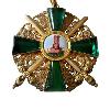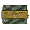 Runde Medaille aus Bronze mit abgestuftem Rand. Oben eine breitere Öse mit Bandring.