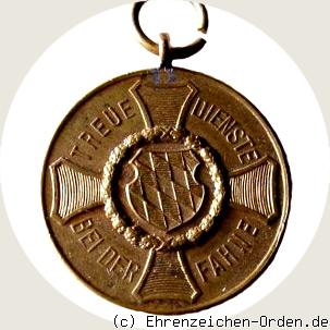Die Dienstauszeichnungen in der bayerischen Armee wurden erstmals am 13. Januar 1816 durch König Max I. gestiftet. Die Auszeichnung war ein Veteranenschild und wurde an Unteroffiziere und Soldaten für 40 und 24 Jahre Dienstzeit in der bayerischen Armee vergeben. Die Dienstzeit wurde bis dahin durch weiße Streifen (Chevrons) am oberen Ärmel der Uniform kenntlich gemacht. Alle 6 Jahre kam ein Streifen dazu. Mit 18 Jahren Dienstzeit hatte der Soldat also 3 Streifen auf dem Oberarm. Danach wurden die Veteranenschilder auf rotem Tuch verliehen. Am 03. März 1865 stiftete König Ludwig II. neue Dienstauszeichnungen (Dienstalterszeichen) in Kreuzform für 40 und 24 Jahre die nun auch an Offiziere und Militärbeamte verliehen wurde. Am 21. Januar 1876 wurden ebenfalls durch König Ludwig II. neue Dienstauszeichnungen in 3 Klassen für Unteroffiziere und Soldaten in Schnallenform gestiftet. Die Dienstjahre wurden auf 21 für die 1. Klasse, 15 Jahre für die 2. Klasse und 9 Jahre für die 3. Klasse herabgesetzt. Die hier gezeigte Dienstauszeichnung wurde am 30. August 1913 durch den Prinzregenten Luitpold eingeführt. Sie bestand nunmehr aus einem Kreuz als 1. Klasse für 15 Jahre und 2 Medaillen für 12 und 9 Jahre Dienstzeit als 2. und 3. Klasse. Quelle: J. Nimmergut, Deutsche Orden und Ehrenzeichen bis 1945, Bd. 1, 1997.