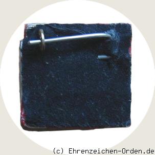 Rechteckige Schnalle aus Silber. Diese aufgebracht auf einer mit Ordensband überzogenen Metallplatte. Hinten eine waagerechte Anstecknadel.