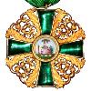 Achtspitziges Kreuz in Johanniterform aus vergoldeter Bronze. Vorder- und Rückseite mit aufgelegtem, runden Medaillon (13 mm). Die Kreuzarme haben erhöhte, polierte Kanten mit innenliegender Linieneinfassung. Die Innenseiten der Arme sind fein gekörnt. Zwischen den Spitzen des oberen Kreuzarms eine angelötete Öse mit Bandring.