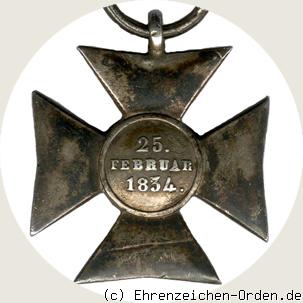 Herzog Wilhelm von Nassau stiftete die Dienstehrenzeichen für Offiziere, Unteroffiziere und Soldaten am 25. Februar 1834. Zweck der Auszeichnung war treue Dienste und untadeliges Verhalten in der Armee zu belohnen und ein äußeres Zeichen im Geist der Zeit zu verleihen. Für die Unteroffiziere und Soldaten wurden Dienstehrenzeichen in 3 Stufen gestiftet. Die 1. Stufe wurde nach 10 Dienstjahren verliehen und war nur 25 mm groß. Die 2. Stufe erforderte 16 Dienstjahre und die 3. Stufe wurde nach 22 Jahren treuen Dienst verliehen. Die 2. und 3. Stufe waren 27 mm groß, wie das Kreuz der Offiziere. Die entsprechende römische Zahl für das Dienstalter ist auf dem oberen Kreuzarm. Gemeinsam mit den Dienstehrenzeichen für Unteroffiziere und Soldaten wurde auch ein vergoldetes Kreuz für Offiziere gestiftet das nach 25 Dienstjahren verliehen wurde. Angeregt wurde die Stiftung durch die Chefs der nassauischen Infanterie-Regimenter. Das Generalkommando unterstützte dies durch eine Stellungnahme vom 30. Dezember 1833 und drängte den Herzog zur Stiftung. Bis zur Stiftung wurde das Dienstalter, wie zum Beispiel in Bayern, durch Chevrons kenntlich gemacht. Diese wurden am 15. Oktober 1807 eingeführt. Kreuze aus versilberter bzw. vergoldeter Bronze werden als nicht statutengemäß oder zeitgenössig angesehen. Es sind auch Miniaturen in 16 mm bekannt die ebenfalls in Silber gefertigt waren. Quelle: J. Nimmergut, Deutsche Orden und Ehrenzeichen bis 1945, Bd. II , 1997.