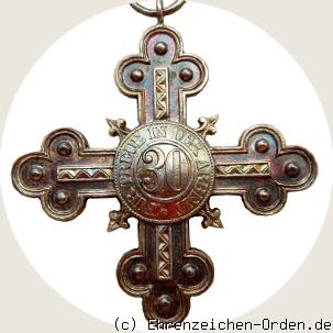 Die Ehrenauszeichnung für 30 Jahre wurde am 16. September 1886 durch Herzog Ernst I. gestiftet. Ausgezeichnet wurden männliche und weibliche Dienstboten die ununterbrochen 30 Jahre in der selben Familie treu gedient haben. Verleihungsanträge für städtische Dienstboten waren vom Stadtrat einzureichen. Ländliche Dienstboten wurden durch das Landratsamt vorgeschlagen. Die erste Form wurde bis 1895 ausschließlich an Dienstboten verliehen. Die Inschrift der lautet – FÜR – TREUE – DIENSTE -. Weiterhin wurde eine Stufe für 50 Jahre mit vergoldetem Mittelschild eingeführt.