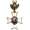 Runde Medaille aus Silber mit erhöhtem Rand. Oben eine gewöhnliche Öse mit Bandring. In diesen angebracht der silber vergoldete Eichenbruch mit den Jahreszahlen. Hier mit 2 flachen separaten fest verlöteten Ösen. In der oberen Öse ein zweiter Bandring für das Band.