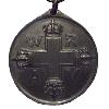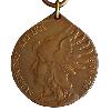 Runde Medaille aus Silber mit erhöhtem Rand.