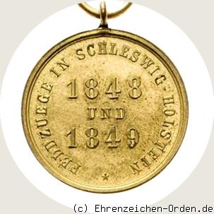Diese Erinnerungsmedaille für die Veteranen von 1848 und 1849 wurde durch Großherzog Nicolaus Friedrich Peter am 4. Juli 1898 gestiftet. Anlass war das 50jährige Jubiläum des Krieges gegen Dänemark. „… um den Veteranen, die vor nunmehr fünfzig Jahren an den Kriegen für Schleswig und Holstein in den Jahren 1848 und 1849 theilgenommen haben, ein äußeres Zeichen der Erinnerung an jene Zeiten zu gewähren.“ Erhalten haben diese Medaille die ehemaligen Krieger die bei den oldenburger Truppen bei diesen Feldzügen ehrenvoll teilgenommen haben. Zur Verleihung gehörte ein Besitzzeugnis. Die Oldenburger hatten als Teil der Bundestruppen 1 Infantrie-Regiment zu 3 Bataillonen gestellt und eine 6-Pfünder-Batterie. Beyreiß gibt ca. 2700 Unteroffiziere und Soldaten an. Durch das hohe Alter der Veteranen nach 50 Jahren sollte die Zahl der noch lebenden Veteranen erheblich weniger gewesen sein. Eine genaue Verleihungszahl ist nicht bekannt, da die Akten in den 1920iger Jahren vernichtet wurden. Quelle: Friedhelm Beyreiß, Der Hausorden und die tragbaren Ehrenzeichen des Großherzogtums Oldenburg 1813-1918, 1997.