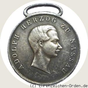 Die Erinnerungsmedaille an das Gefecht bei Eckernförde wurde am 25. Juli 1849 durch Herzog Adolph von Nassau gestiftet. Ausgezeichnet wurden Offiziere, Unteroffiziere und Kanoniere der nassauischen Artillerie, die am Gefecht bei Eckernförde ruhmreich teilgenommen haben. Das Gefecht fand im Deutsch-Dänischen Krieg statt. Die nassauische Feldbatterie, geführt durch Hauptmann Ludwig Müller, war maßgeblich an der Versenkung des dänischen Kriegsschiffes „Christian VIII“ und der Erbeutung der „Gefion“ beteiligt. Am 5. April 1849 versuchten dänische Truppen einen Landungsversuch in der Eckernförder Bucht. 1848 wurde bereits die Verteidigung des besetzten Eckernfördes durch 2 getrennte Batterien, bestehend aus 10 Geschützen, eingerichtet. Diese standen unter dem Kommando des preußischen Hauptmanns Jungmann. Die 3. Batterie der nassauischen Artillerie mit 6 Geschützen wurde später als Verstärkung hinzugefügt. Die dänischen Truppen waren mit 148 Schiffsgeschützen und ca. 1300 Mann in der Überzahl. Das eroberte Schiff „Gefion“ wurde instandgesetzt und unter dem Namen „Eckernförde“ der Reichsmarine übergeben.