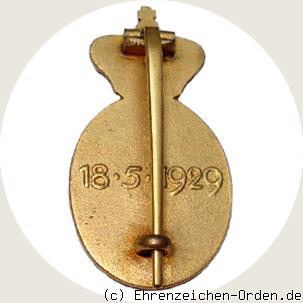 Hochovales Abzeichen aus vergoldeter Bronze. Oben eine mitgeprägte große Königskrone. Die Rückseite ist glatt mit senkrechter Anstecknadel.