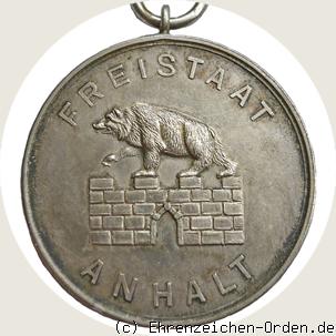 Das Ehrenzeichen wurde am 10. April 1926 per Erlass durch das Anhaltische Staatsministerium gestiftet. Am 8. November 1926 wurde die Stiftung durch ein Erinnerungszeichen für 50 Dienstjahre erweitert. Dieses wurde bei gleicher Größe in vergoldeter Bronze hergestellt. Ausgezeichnet wurden Feuerwehrleute einer organisierten, anhaltinischen Feuerwehr, die mindestens 25 Jahre als aktives Mitglied tätig waren und sich durch treue Diensterfüllung ausgezeichnet haben. Zu den organisierten Feuerwehren gehörten sowohl freiwillige als auch Berufsfeuerwehren. Feuerwehrleute, die bereits das durch Herzog Friedrich am 21. November 1888 gestiftete Ehrenzeichen erhalten hatten, konnten das neue Ehrenzeichen für 25 Jahre nicht erhalten. Die zusätzlich gestifteten Ehrenzeichen für 50 Jahre bzw. die gleiche Auszeichnung für 40 Jahre (ab 1930) konnten diese Feuerwehrleute erhalten. In Ausnahmen wurden diese Ehrenzeichen auch für besondere Verdienste um das Feuerlöschwesen verliehen ohne die vorgeschriebene Mindestdienstzeit zu berücksichtigen. In Betracht kamen Vorstandsmitglieder, Bürgermeister, Ehrenmitglieder oder höhere Beamte. Nach der Gleichschaltung im Nationalsozialismus wurde die Verleihung Ende 1936 eingestellt. Die silberne Medaille wurde insgesamt 1124 mal verliehen. Quelle: Gerd Scharfenberg, Die Orden und Ehrenzeichen der Anhaltischen Staaten 1811-1935, 1999.