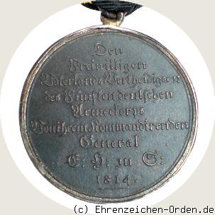 Rückseite: Eiserne Medaille für die Freiwilligen des V. Deutschen Armeekorps 1814