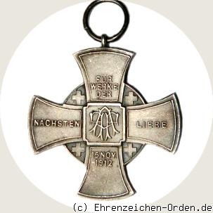 Gestiftet wurde das Verdienstkreuz durch Großherzog Friedrich Franz IV und der Großherzogin Alexandra, Prinzessin von Großbritannien und Irland, Herzogin von Braunschweig und Lüneburg, am 15 November 1912. Ausgezeichnet wurden Männer wie Frauen unabhängig vom Stand für Verdienste auf dem Gebiet der Nächstenliebe. Es konnten auch Zivilpersonen ausgezeichnet werden die sich im Krieg und in den besetzten Gebieten bei der freiwilligen Kranken-und Verwundetenpflege verdient gemacht hatten. Die Kreuze wurden in der berliner Münze geprägt nach dem Stempel von Prof. Sturm. Es wurden nur 951 Stück geprägt. Für Verdienste im Krieg wurde es am Band des Militärverdienstkreuzes getragen. Quelle: J. Nimmergut, Deutsche Orden und Ehrenzeichen bis 1945, Bd. II, 1997.