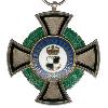 Hohl gearbeitetes Kreuz aus Silber. Die Kreuzarme sind fein gekörnt und an den Enden abgerundet. Innenliegend auf den Kreuzarmen im Abstand vom Rand ein breiter, erhöhter, glatter silberner Streifen. Vorder- und Rückseite mit aufgelegten, runden, silbernen Mittelschildern. Zwischen den Kreuzarmen umlaufend ein silberner Kranz aus rechts Eichenlaub und links Lorbeerlaub.(Vorderseite) Am oberen Kreuzarm eine angelötete gewöhnliche Öse mit Bandring.