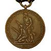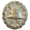 Runde Medaille aus versilbertem Eisen ohne erhöhten Rand. Oben eine angelötete kleine gewöhnliche Öse mit Bandring.