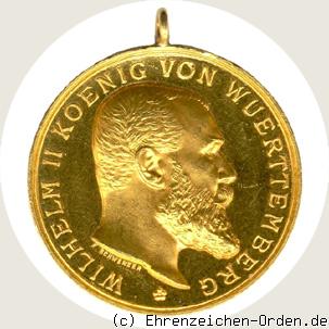 Die Militärverdienstmedaille wurde erstmals am 30. Mai 1794 durch Herzog Ludwig Eugen in Silber gestiftet. 1800 wurde diese durch eine goldene Medaille ergänzt, die nur an Offiziere für außergewöhnliche Verdienste verliehen wurde. Im Jahre 1806 wurde durch König Friedrich I. die Medaillen neu gestaltet und die Bestimmungen für die Verleihung geändert. Jetzt war es möglich auch Unteroffiziere mit der goldenen Militärverdienstmedaille auszuzeichnen. Diese Medaillen wurden in verschiedenen Varianten geprägt und haben 5 verschiedene Arten von Ösen. Verliehen wurden die Medaillen mit der Schiffre – FR – von 1806 bis 1818. Unter der Herrschaft König Wilhelms I. wurden am 23. September 1818 die Statuten geändert und die Medaillen dem Militärverdienstorden angegliedert. Die Medaillen trugen jetzt auf der Vorderseite das Porträt des Königs mit Umschrift am Rand. Verliehen wurden diese in 2 Versionen von 1818 bis 1864. Zur Regierungszeit König Karls wurden die Vorderseiten nochmals geändert. Verliehen wurden diese ab 1864 bis 1892 mit dem Bildnis König Karls. Die Militärverdienstmedaille wurde ab 1892 mit dem Bild von Wilhelm II. verliehen. Stempelschneider war Karl Schwenzer in Stuttgart.