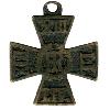Medaille aus vergoldetem Silber mit erhöhtem Rand. Durch die gerillte Öse gehen 2 gekreuzte, antike Schwerter. Im Schnittpunkt der Schwerter oben ein Segment mit Öse und Bandring.