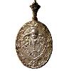 Hochovales, durchbrochen gefertigtes Ehrenzeichen aus vergoldeter Bronze. Am oberen Rand eine aufgesetzte 5-büglige Krone. Rückseitig auf dem Reichsapfel eine angelötete Öse mit Bandring.