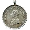 Hochovales, durchbrochen gefertigtes Ehrenzeichen aus vergoldeter Bronze. Am oberen Rand eine aufgesetzte 5-büglige Krone. Auf der Rückseite eine senkrechte Anstecknadel mit Gegenhaken.