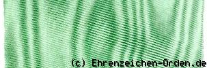 Goldenes Kreuz in Malteserform. Die Kreuzarme sind gold bordiert mit breitem weiß emailliertem Rand. Dieser nach innen mit goldenem Strich begrenzt. Die Innenseite dunkelgrün emailliert. Zwischen den Kreuzarmen ein umlaufender goldener Rautenkranz. Jeweils eine ganze und 2 halbe Blätterornamente. Vorder- und Rückseite mit separat aufgelegten Mittelschildern. Zwischen den Spitzen des oberen Kreuzarmes eine verzierte Öse mit mehrfach gerilltem, länglichem Bandring.
