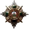 Achtspitziges, hohl gefertigtes Kreuz aus Silber mit erhöhten, abgestuften, glatten Rändern. An den Spitzen der Kreuzarme kleine Kugeln. Mittig ein rundes, vergoldetes und mittig emailliertes Medaillon. Zwischen den Kreuzarmen separat eingelötete, vergoldete, durchbrochene Chiffren mit Krone. Die Rückseite ist glatt und silbern. Senkrecht eine Anstecknadel mit Gegenhaken. (Die Vergoldung der Chiffren und Medaillonkranz sind verblasst)