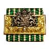 Achtspitziges, hohl gefertigtes, goldes Kreuz mit goldenen Kugeln an den Spitzen der Kreuzarme. Die Kreuzarme sind gold bordiert und hellblau emailliert. Zwischen den Kreuzarmen jeweils der goldene, gekrönte, verzierte Buchstabe – W -. Vorder- und Rückseite mit rundem Mittelschild. Zwischen den Spitzen des oberen Kreuzarmes eine goldene Fächerverzierung auf der ein nach links schreitender Löwe steht. Auf dem Löwen ruht eine goldene Krone, die Zwischenräume sind halbhoch mit roter Emaille hinterfüttert. Ausgehend von den Kugeln des oberen Kreuzarmes gehen links und rechts ein grün emaillierter Lorbeerzweig (je 5 Blätter) zur Krone. Auf dem Reichsapfel mit Kreuz der Krone eine Kugelöse mit Bandring.