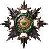 - Am oberen Rand ein gebogenes fliegendes Band mit der Schrift – TREU – ° – UND – ° – FEST –