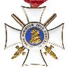 Rechteckige Spange aus Silber oder versilbertem Buntmetall. Diese aufgebracht auf einer kleinen Bandschleife in den Farben des Ludwigsordens. Die Spange mit 2 Stiften mit der rechteckigen Platte der Rückseite verbunden. Diese mit einer waagerechten Anstecknadel.