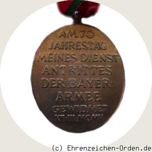 Gestiftet wurde diese Medaille zum 70 jährigen Militärjubiläum von Prinzregent Luitpold am 12.März 1905. Die Medaille sollte ein äußeres Zeichen seiner unwandelbaren Gesinnung sein. Verliehen wurde die Medaille an alle aktiven Offiziere, Sanitätsoffiziere Unteroffiziere und Fähnriche des Friedensstandes einschließlich der Offiziere und Sanitätsoffiziere a`la suite der Armee. Alle aktiven obere Beamte der Militärverwaltung und die Inhaber bayrischer Regimenter und die a`la suite von bayrischen Truppen stehende Offiziere. Am 20. Juni 1905 wurde der Kreis der Empfänger erweitert. Jetzt erhielten auch Soldaten und Beamte im Ruhestand die Medaille wenn sie ihren Wohnsitz in Bayern hatten.